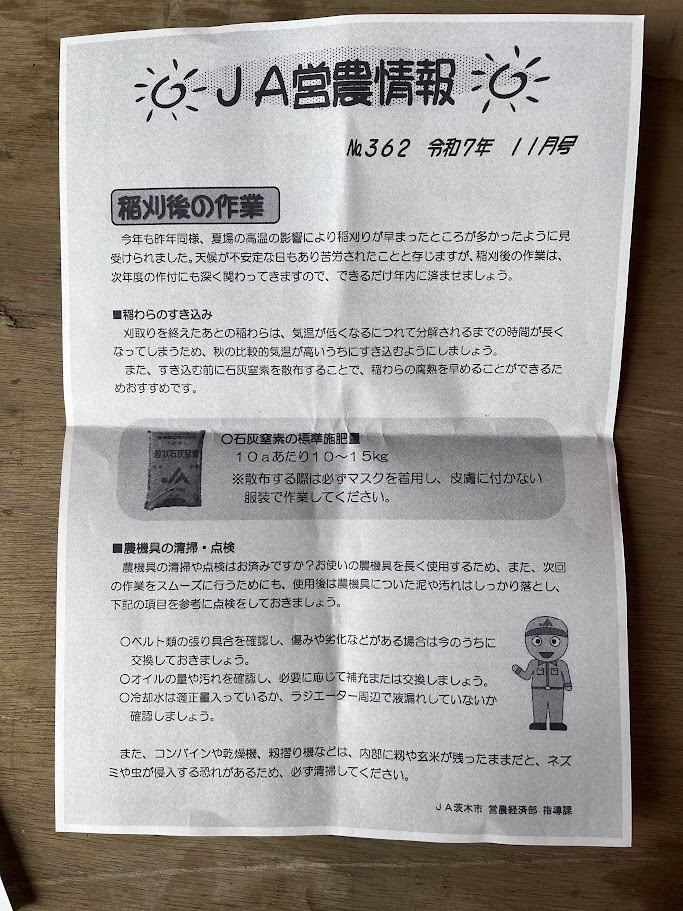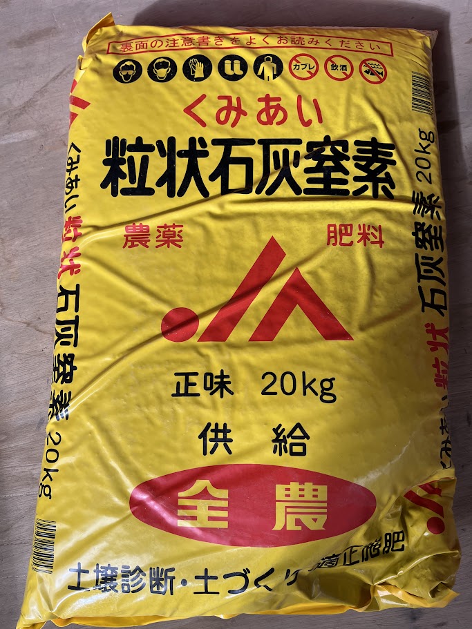 稲刈り後は石灰窒素をまいてからすく