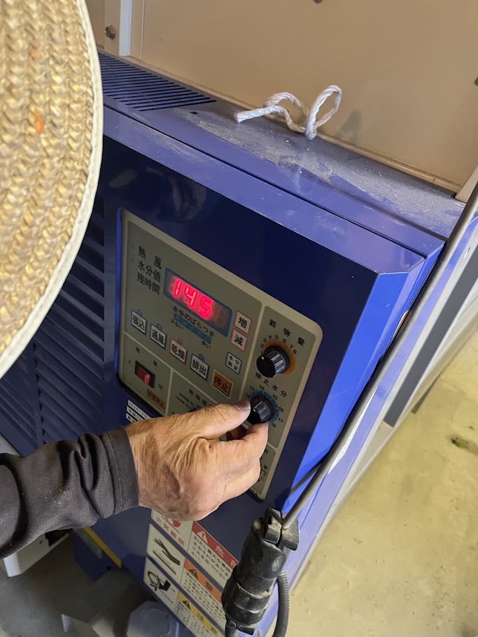 乾燥させる。したのねじを調整し、14.5で止まるようにあわす。夜やる場合は19時くらいで一度消すこと。(周りに迷惑かけないためと、消してじっくりやることで米も美味しくなるみたい。)