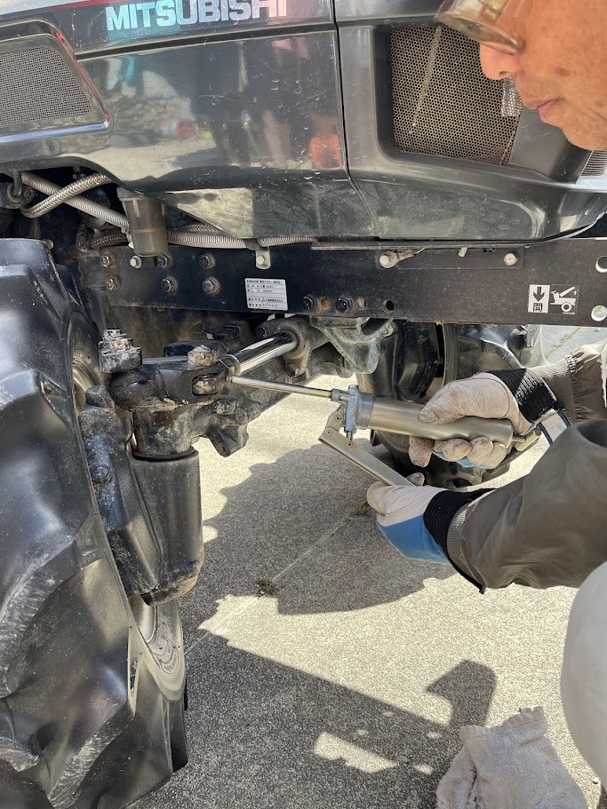 グリスニップルからグリスを入れる。5~10か所くらいある