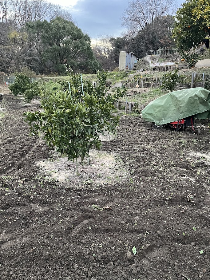 苦土石灰約20キロを小町全体にまいて、一番小さい耕運機で耕す。毎年やる。とのこと。