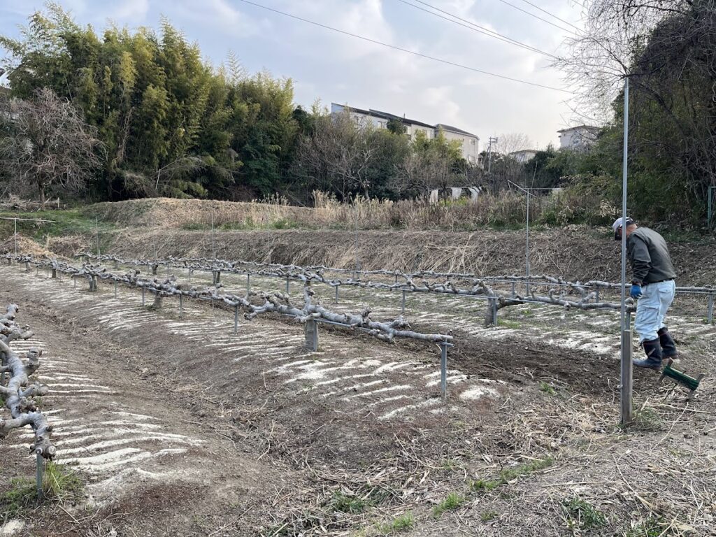 苦土石灰、油粕、フィッシュボーンを1畝に1袋ずつまいた。